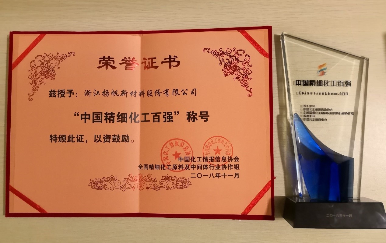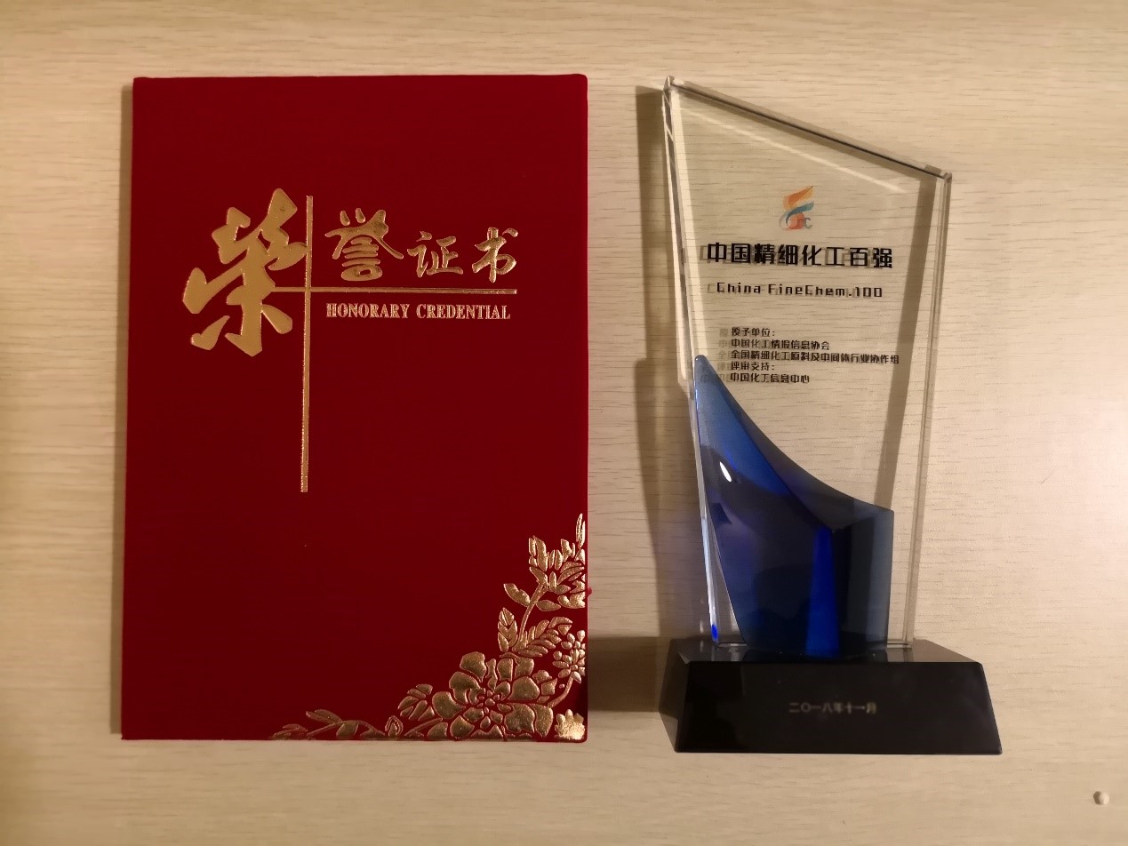 2018年11月8日,在山東鄒城舉辦的2018中國精細化工行業發展(鄒城)峰會暨中國精細化工百強發布會上,我司榮獲了“中國精細化工百強”稱號。