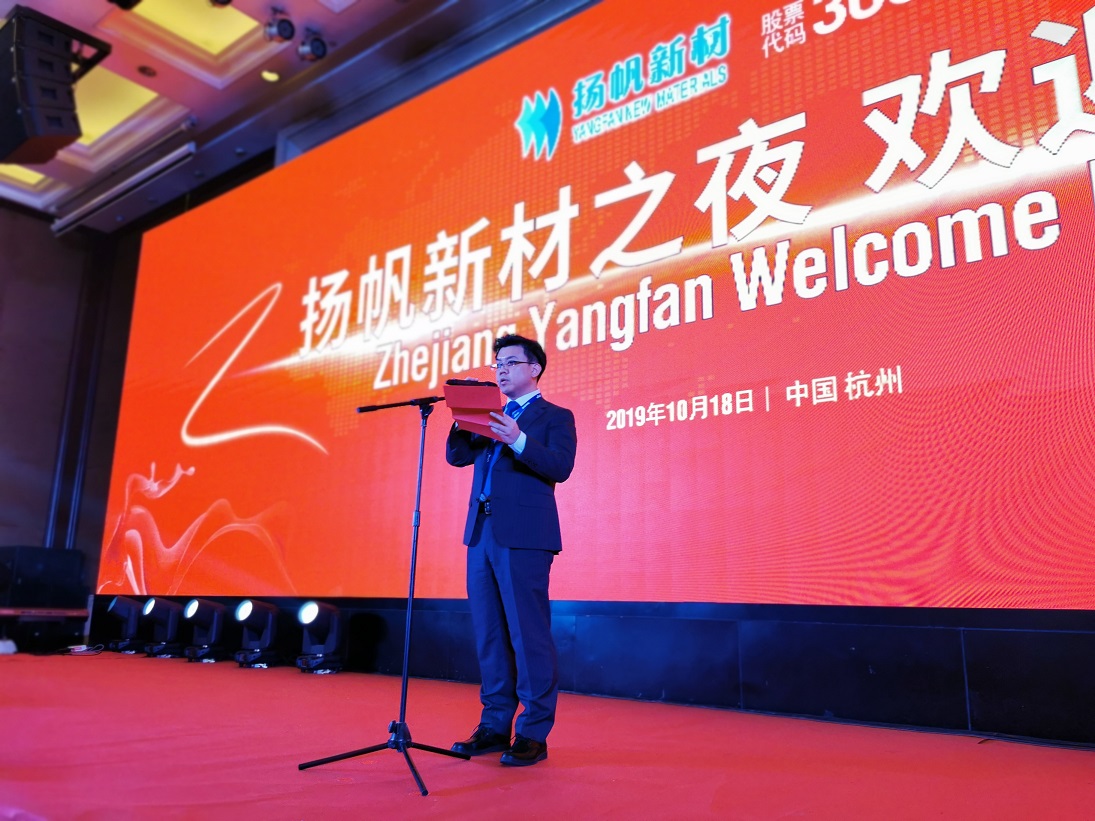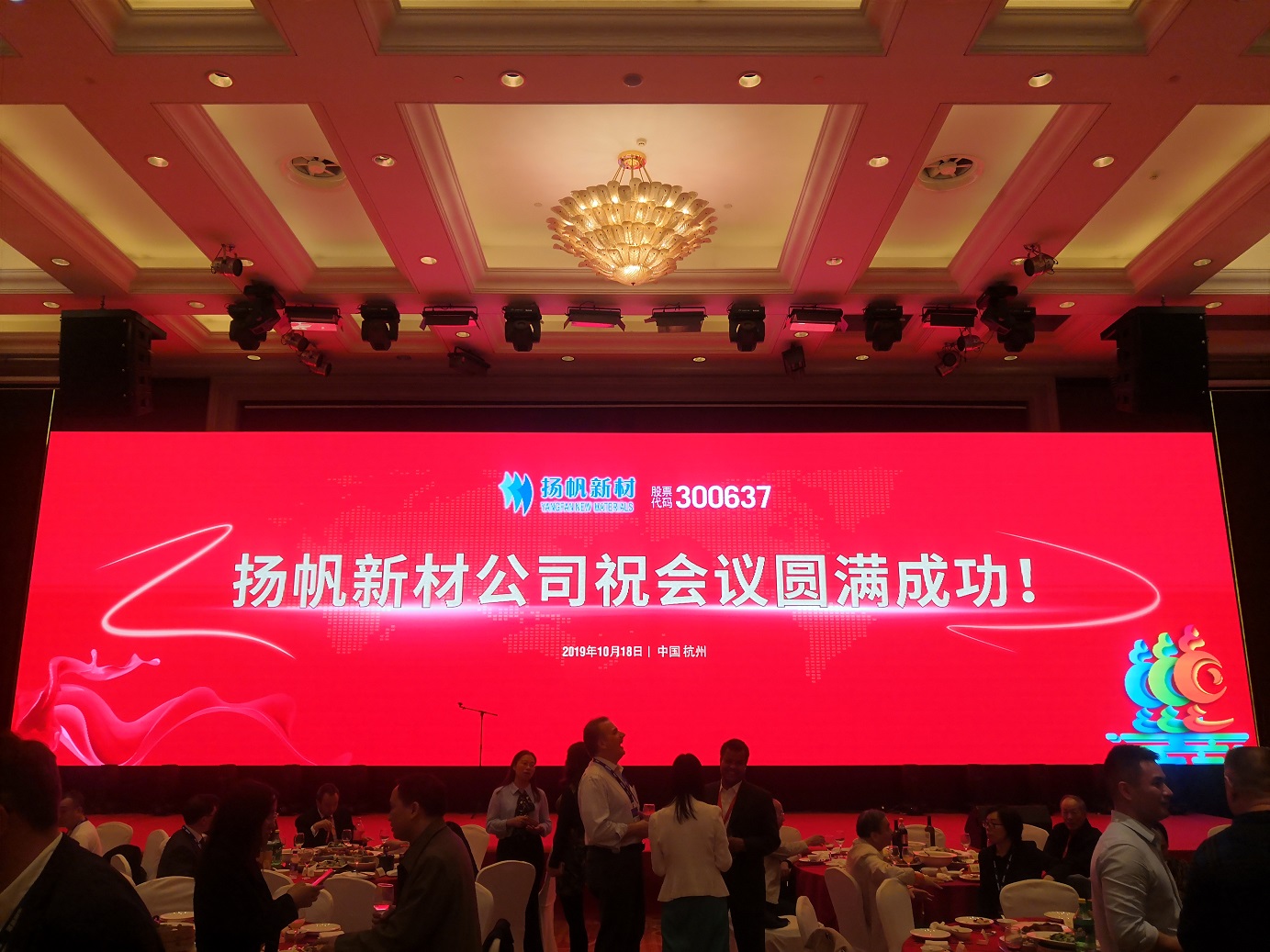 2019年10月17日-20日,第十五屆亞洲輻射固化國際會(huì)議&第二十屆中國輻射固化年會(huì)在杭州順利召開,超過700名行業(yè)企業(yè)界、學(xué)界領(lǐng)袖到會(huì),是歷屆輻射固化會(huì)議中規(guī)模最大的一次。作為行業(yè)內(nèi)重要企業(yè)及本次會(huì)議晚宴的獨(dú)家贊助商,浙江揚(yáng)帆新材料股份有限公司董事長樊彬、總裁李耀土以及副總裁朱俊飛、技術(shù)總監(jiān)吳紅輝等率團(tuán)出席會(huì)議。