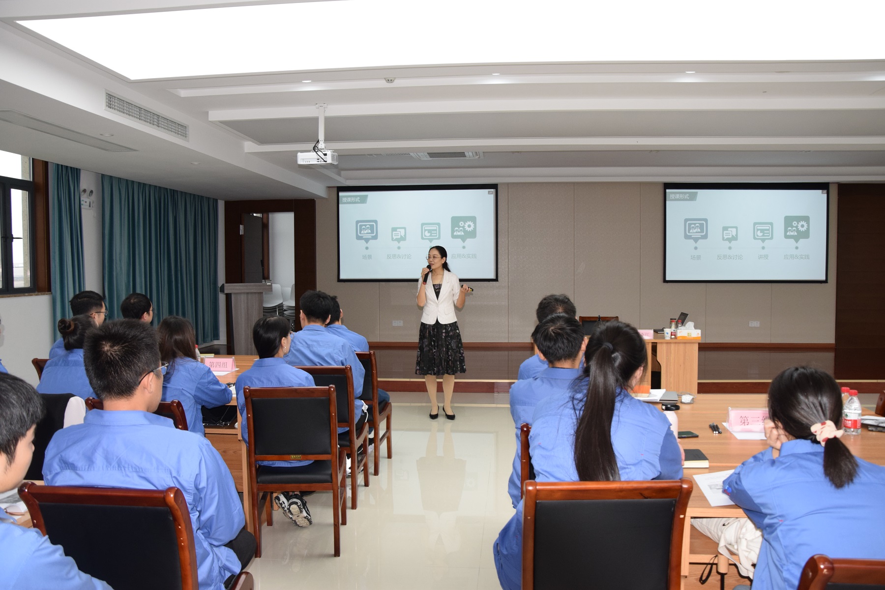 本次培訓(xùn)主要圍繞課程第一階段:探索期的情景教學(xué)和模擬演練兩大塊內(nèi)容展開(kāi)。培訓(xùn)伊始通過(guò)自我介紹、分組,組內(nèi)推選組長(zhǎng)讓大家相互認(rèn)識(shí),活躍氣氛,在之后一整天的課程中,組長(zhǎng)帶領(lǐng)成員進(jìn)行討論學(xué)習(xí)。在培訓(xùn)過(guò)程中,由老師帶領(lǐng)大家通過(guò)視頻場(chǎng)景,分析案例,進(jìn)而進(jìn)行反思、討論并分享自己的心得,由老師聚焦目標(biāo)和問(wèn)題進(jìn)行知識(shí)講解,形成應(yīng)用和實(shí)踐演練,讓大家寓教于樂(lè),學(xué)以致用。