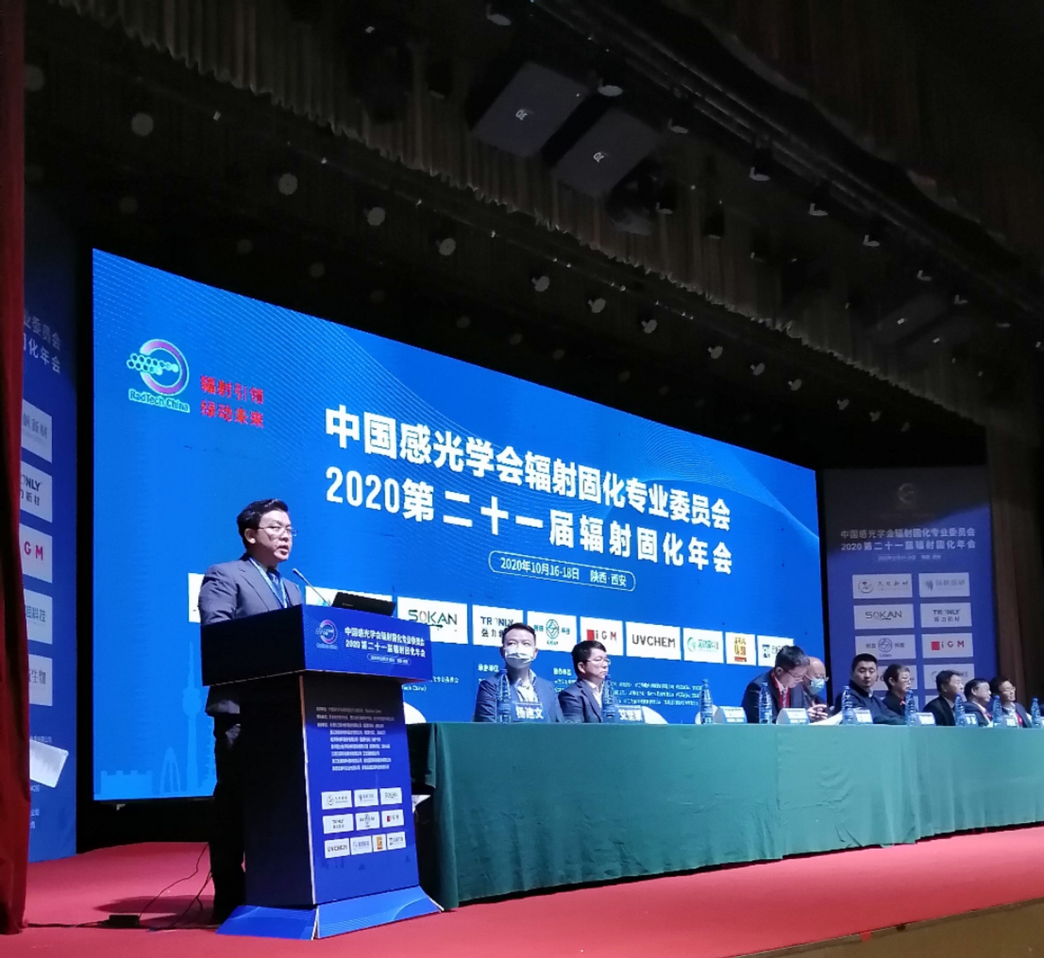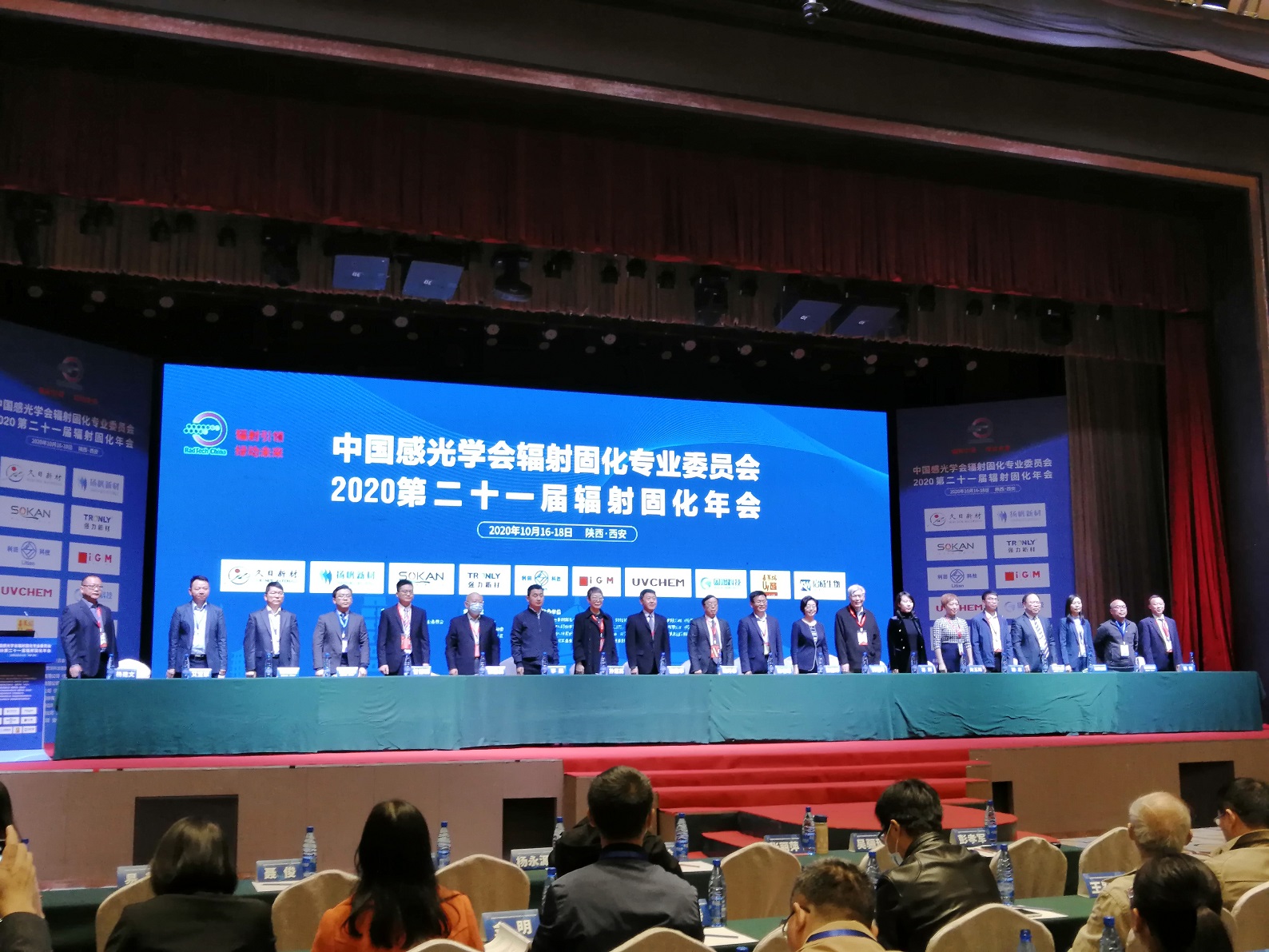 2020年10月16日-18日,《中國感光學會輻射固化專業委員會》第二十一屆輻射固化年會在西安順利召開,有近500名行業企業界、學界領袖參會。作為行業內重要企業及本次會議的贊助商之一,浙江揚帆新材料股份有限公司董事長樊彬、副總裁朱俊飛以及技術總監吳紅輝等率團出席會議。