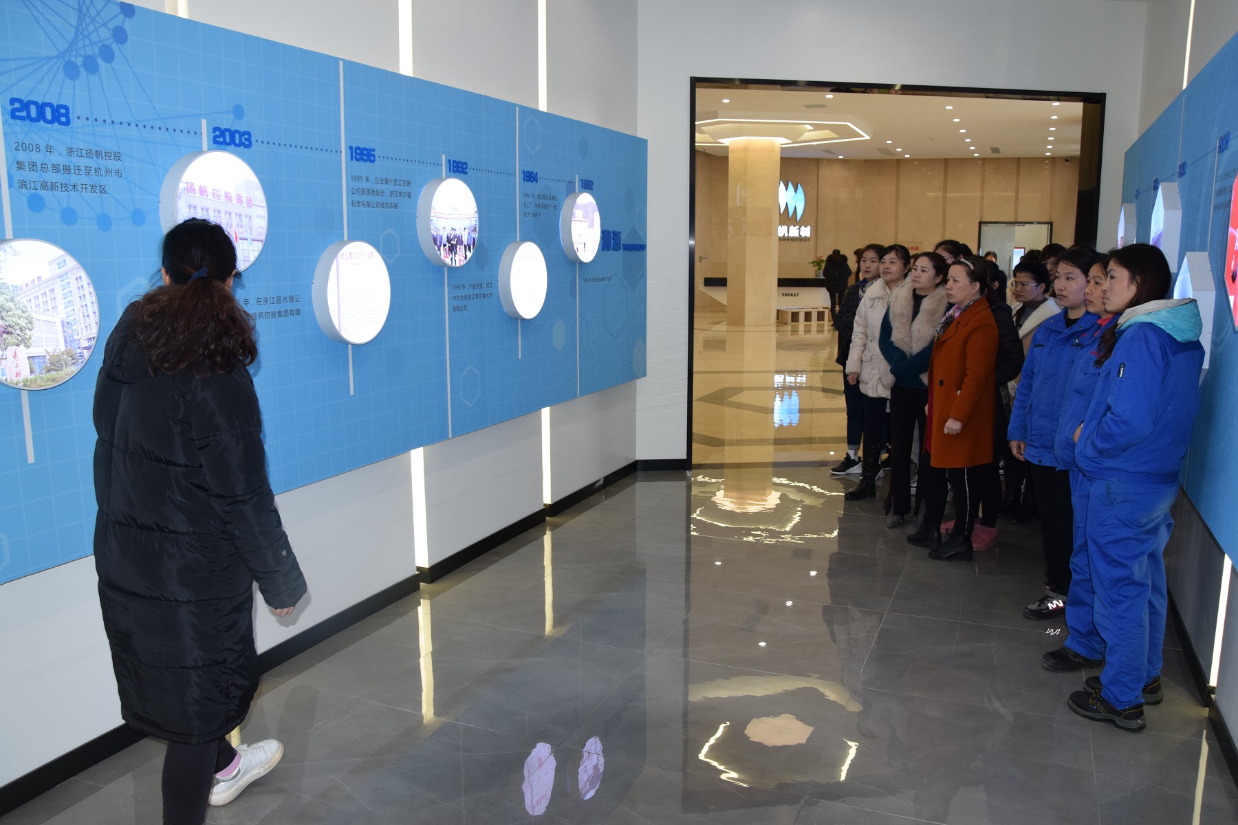 隨后,全體女職工在講解員帶領下參觀了公司發展(產品)展示廳和黨建展廳。重新學習了解公司發展歷程、企業文化、黨群建設等。