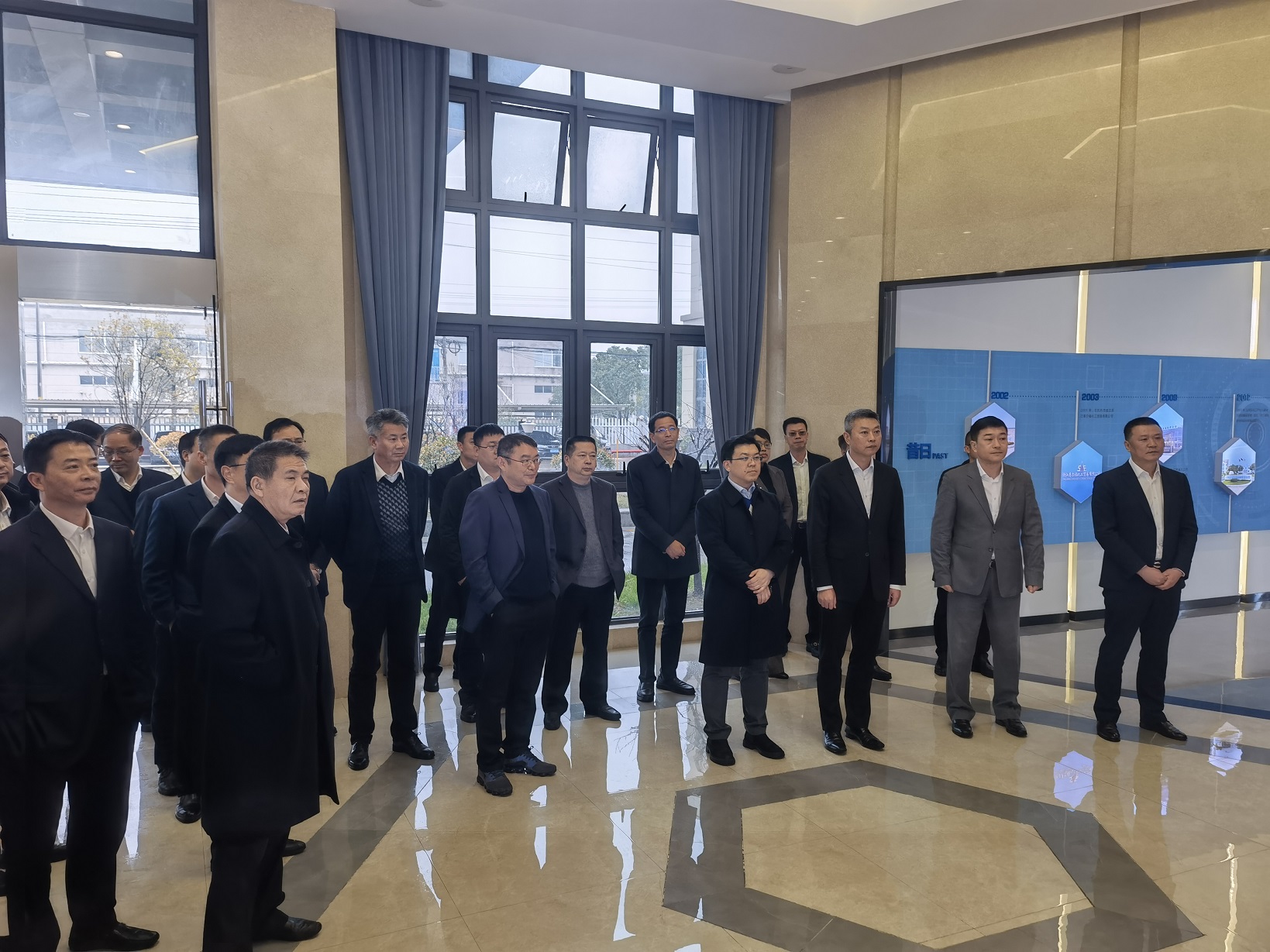 首先,張書記一行參觀了企業發展(產品)展示廳、黨建展廳。樊彬董事長向各位領導就公司發展歷程、企業文化、產品工藝流程、設備裝置、市場前景等方面進行了介紹,并就公司目前的運營情況、主要產品、發展目標、競爭優勢、人才戰略等方面做了重點匯報。
