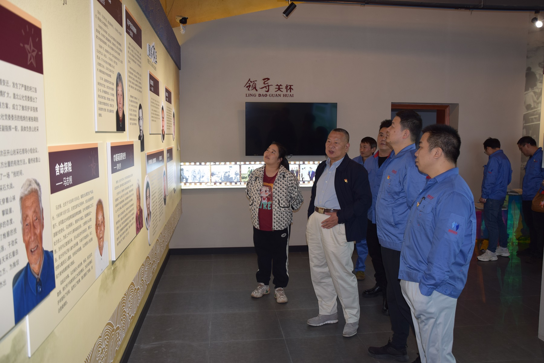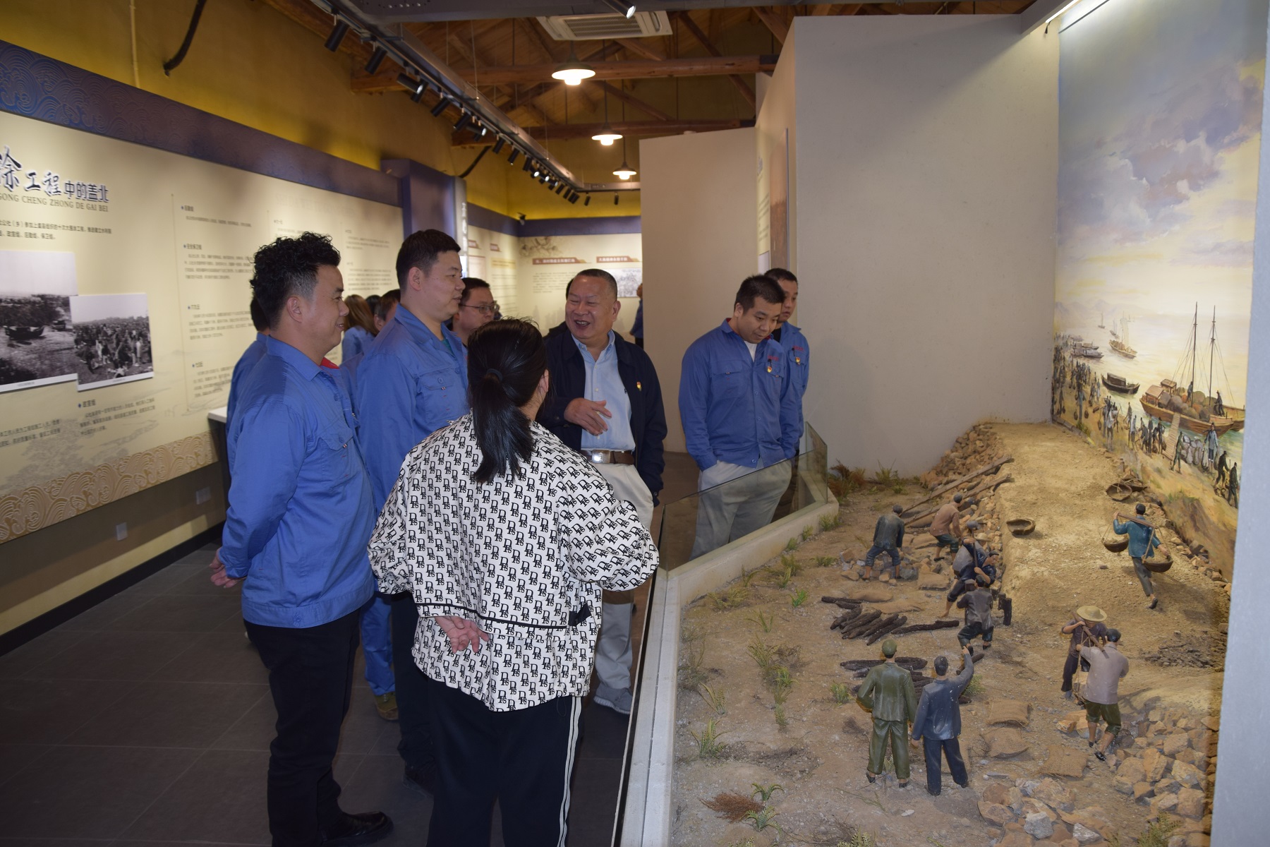 館內分圍涂事跡、圍涂功臣、建制沿革等區塊,生動形象地展現了蓋北人民們的聰明才智,從人拉肩扛的人海大戰到機械化的專業圍墾,從高灘地圍墾向深海造田,史詩般地歷經近半個世紀,久久為功,最終圍成海涂15丘,拓展土地空間34萬畝。先輩們砥礪奮進、無畏不屈的頑強拚搏精神深深的感染了在場的每一位黨員干部。