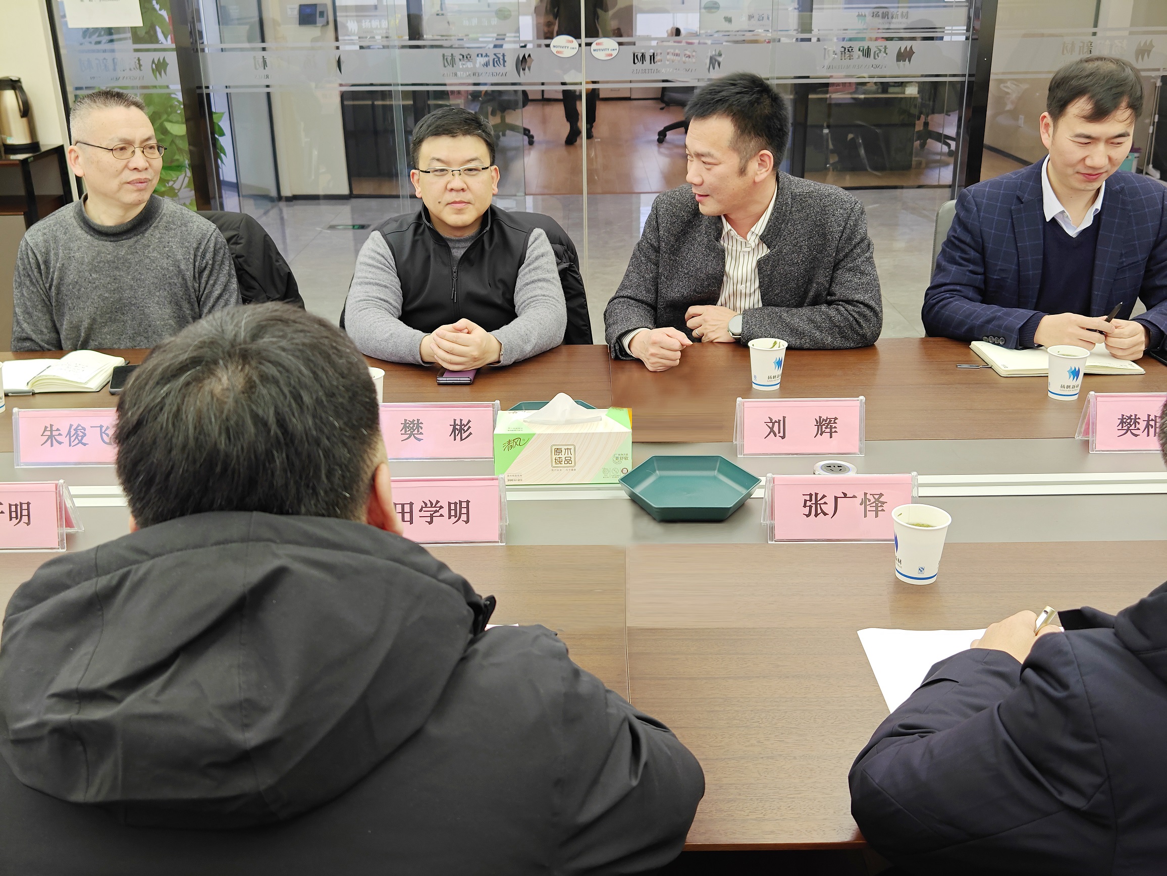 1月31日,內蒙古阿拉善高新技術產業開發區黨工委副書記、管委會主任田學明一行到揚帆新材杭州總部走訪慰問。公司董事長、總裁樊彬,常務副總裁劉輝等接待并陪同調研。