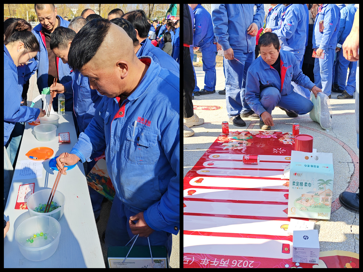 1月9日下午,公司廠區(qū)內張燈結彩、歡聲笑語不斷,“凝心聚力啟新程,揚帆逐夢賀新年”江西揚帆趣味嘉年華活動如期開展!全體員工齊聚一堂,在游戲互動中釋放壓力,在協(xié)作比拼中凝聚情誼,用最熱烈的氛圍迎接2026年的到來。