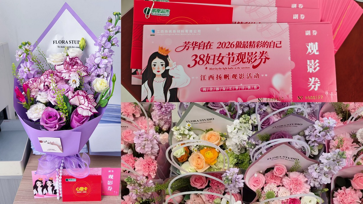 三月春風暖,巾幗綻芳華。為慶祝“三八”國際勞動婦女節,江西揚帆以“芳華自在,2026做最精彩的自己”為主題,為公司85位女職工送上溫馨的節日祝福與暖心禮遇,以一場有溫度、有儀式感的活動,致敬每一位了不起的“她”。