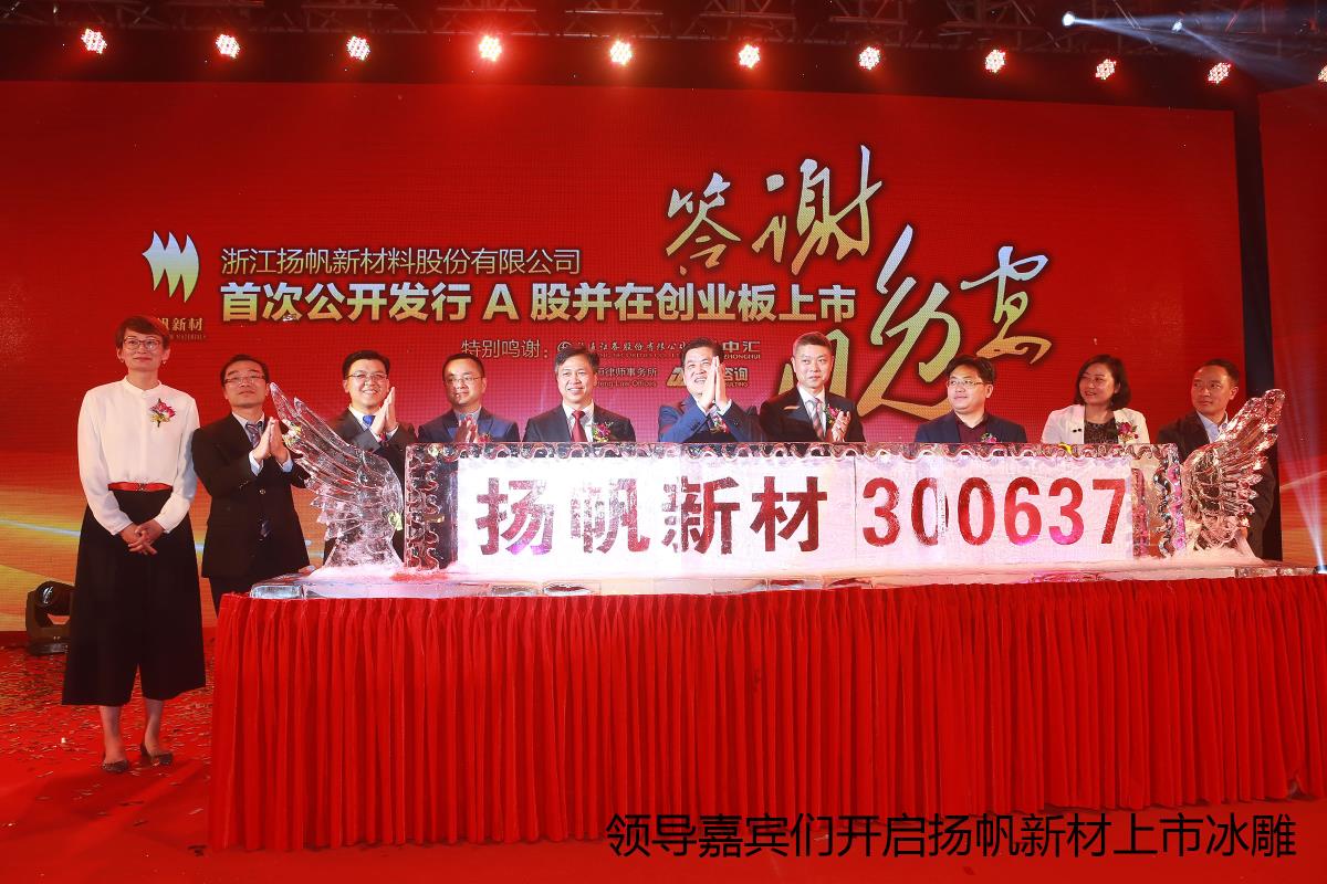 熱烈祝賀浙江揚(yáng)帆新材料股份有限公司于2017年04月12日在中國(guó)創(chuàng)業(yè)板成功上市,簡(jiǎn)稱(chēng)“揚(yáng)帆新材”,股票代碼:300637。